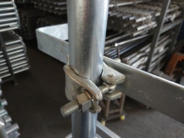 Durch Einsatz von der Gerüst Leiterhalterung kann der Gerüstleiter innerhalb oder außerhalb des QES Gerüstsystems montiert. Dies ermöglicht einen sicheren Zugang im Gerüstsystem.